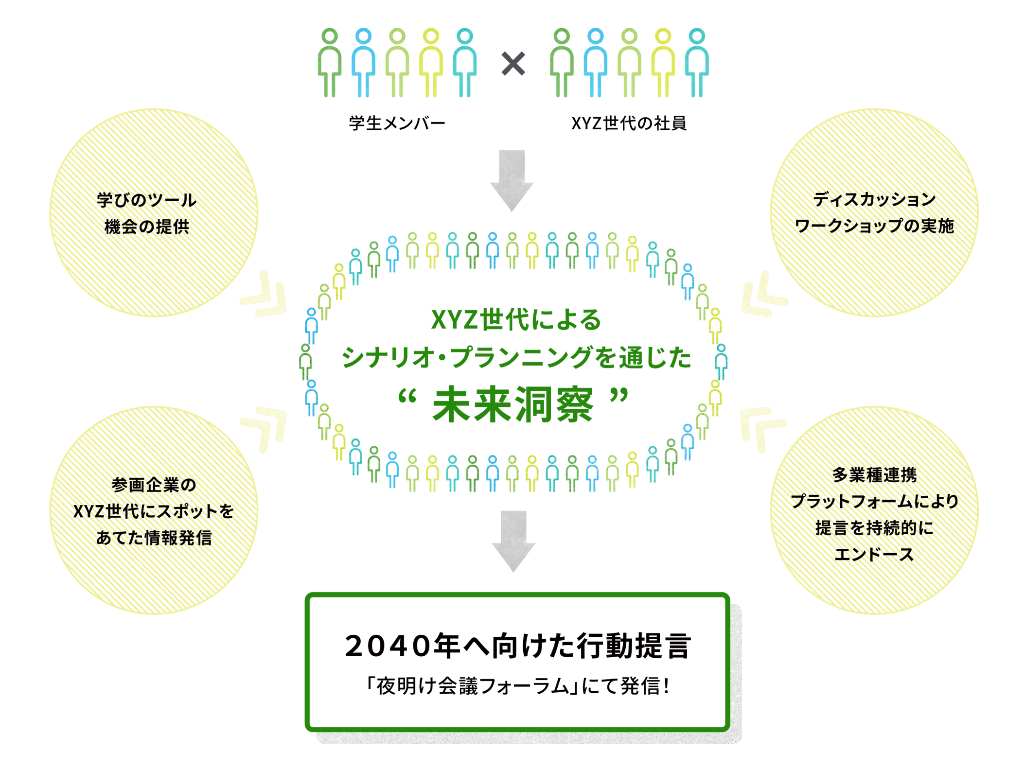 企業・世代を超えた未来洞察を特徴とし、多様な視点からサステナビリティを議論します。